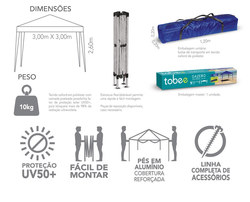 | Tecido | Oxford 210 em poliéster com cobertura prateada |