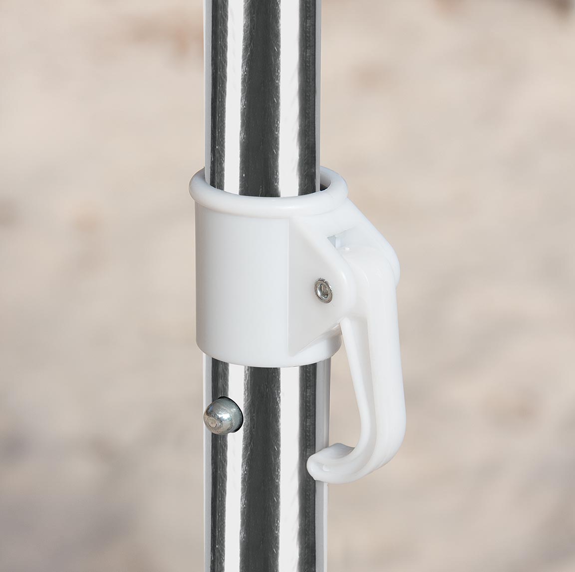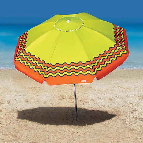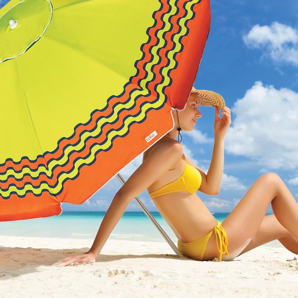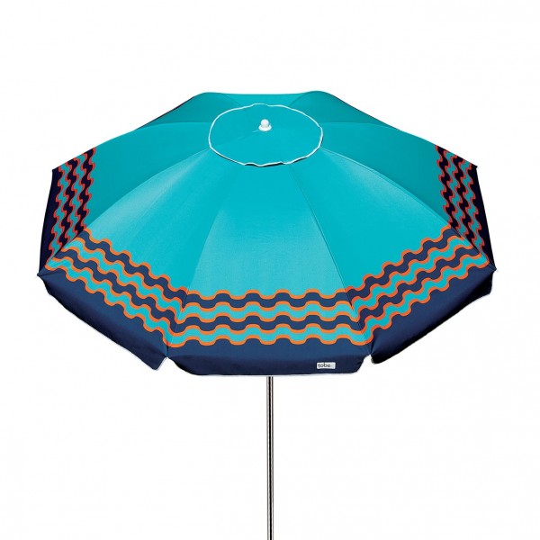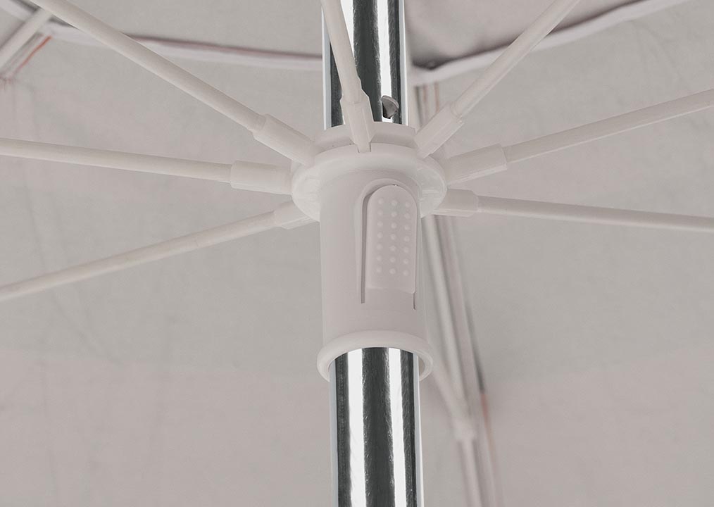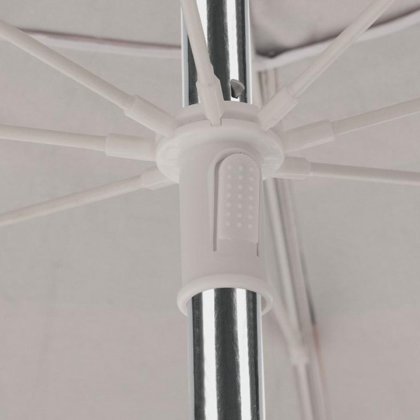 Possui saída de ar no topo que auxilia na estabilidade e sua haste em alumínio vem com tem alavanca e duplo pino de fixação, o que garante maior segurança evitando que a parte superior do guarda-sol se solte. O guarda-sol é articulável, permitindo que você ajuste a posição como preferir.
