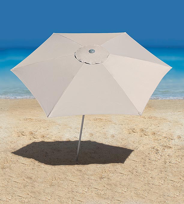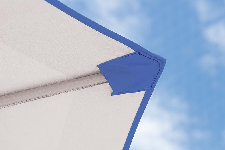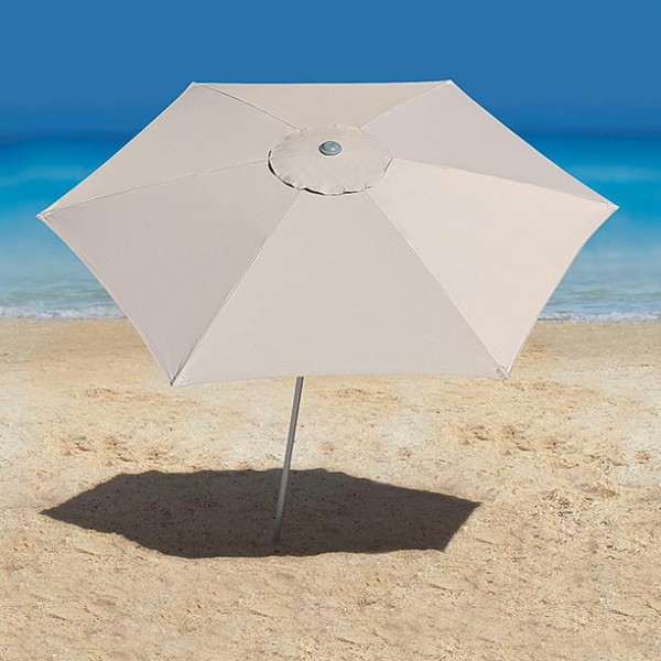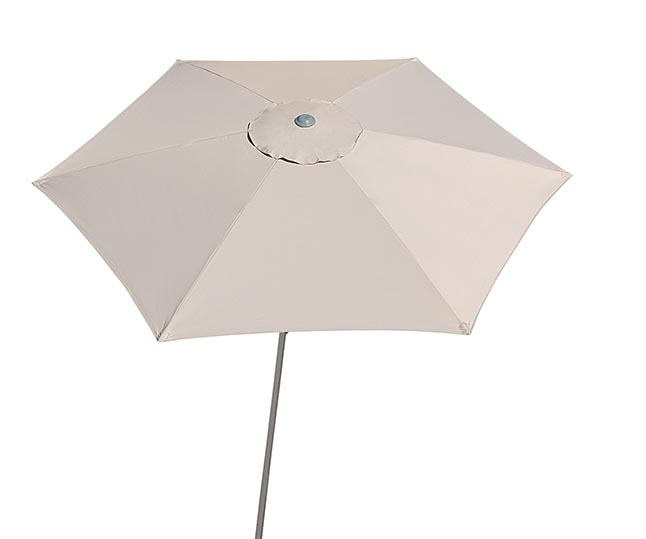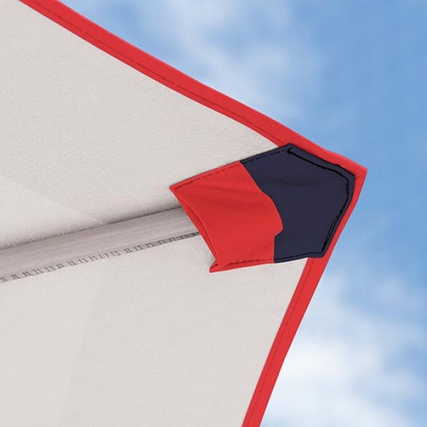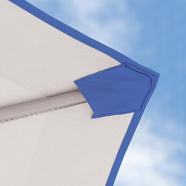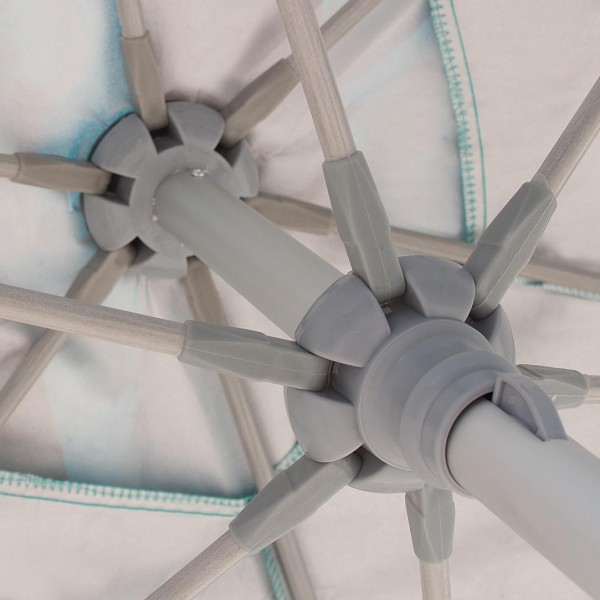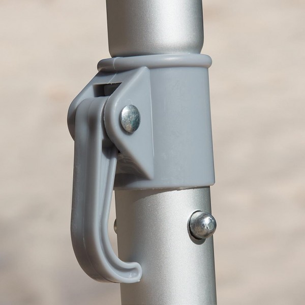 Sempre abrir o guarda-sol com a parte superior voltada contra o vento. Para fixar a parte superior com a parte inferior da haste, puxar a alavanca para cima, encaixar os pinos duplos e finalmente fixar as partes movimentando a alavanca para baixo. Para soltar, puxar a alavanca para cima e depois pressionar os pinos duplos. Este produto tem estrutura reforçada para resistir ao vento, porém não recomendamos utiliza-lo em situações de vento extremo. Após o uso, lavar com água doce e pano e/ou escova macia e deixar secar.